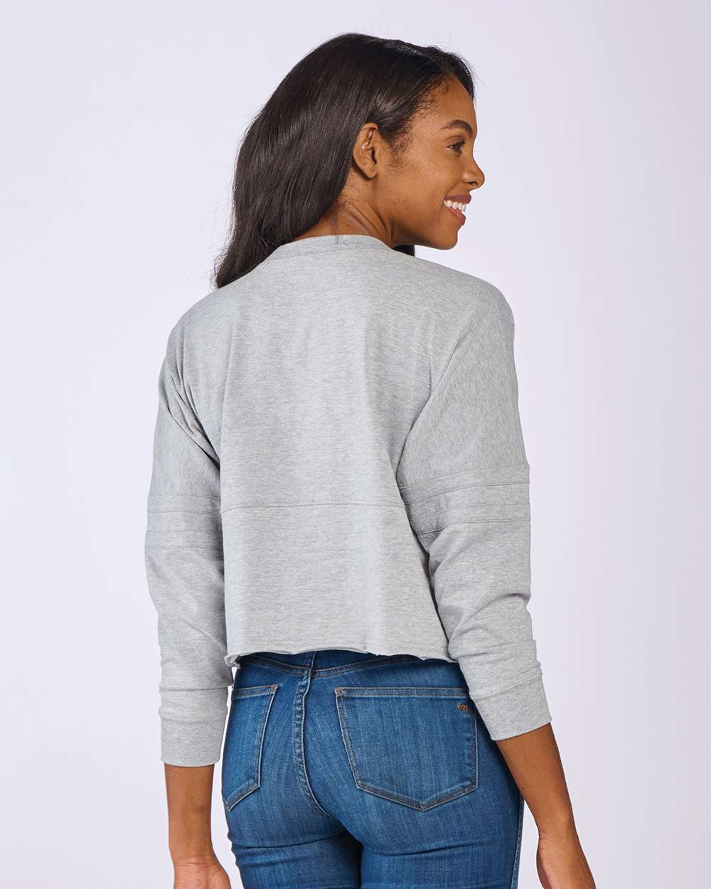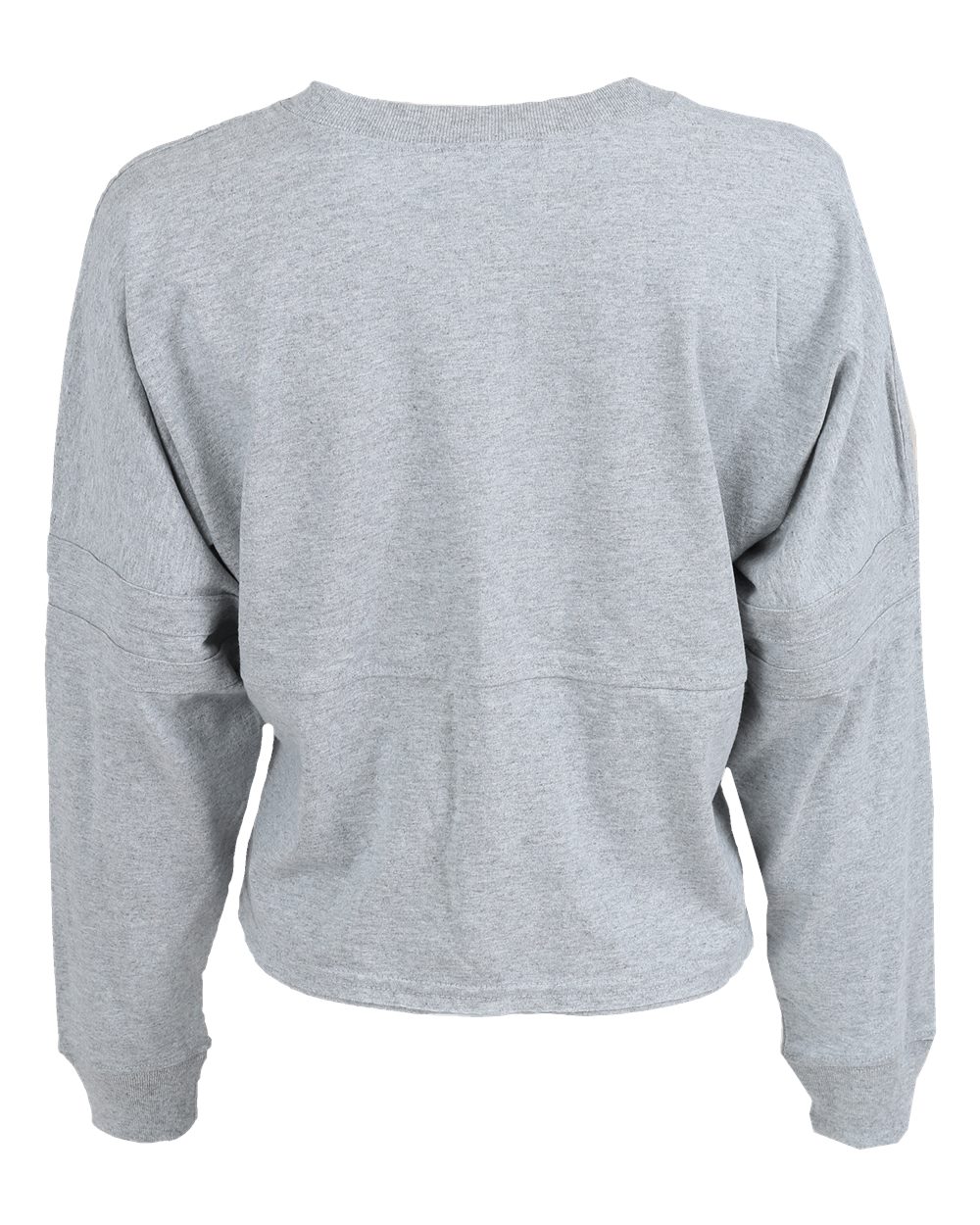 5.5 oz./yd_, 100% cotton ring-spun jersey Oxford Heather: 90/10 cotton/polyester Relaxed, oversize fit Crop top shape Double athletic sleeve stripes...