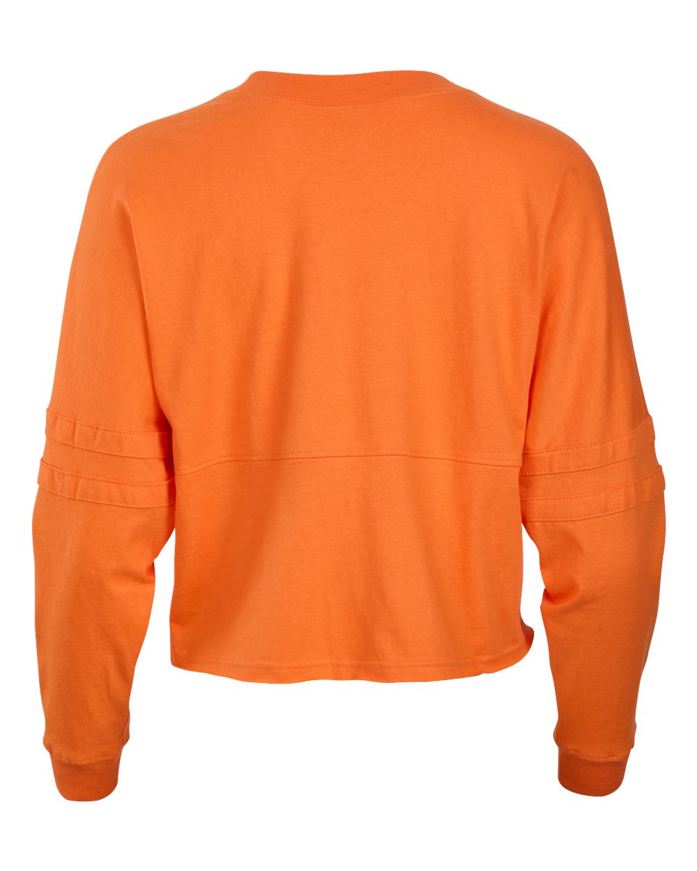 5.5 oz./yd_, 100% cotton ring-spun jersey Oxford Heather: 90/10 cotton/polyester Relaxed, oversize fit Crop top shape Double athletic sleeve stripes...