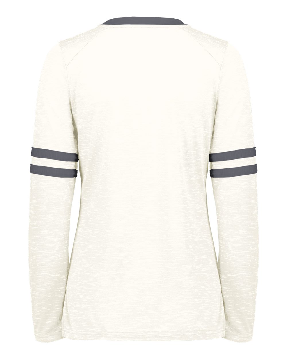 95/5 recycled polyester/cotton Moisture-management properties Lace up neck Set-in sleeves Tag-free label