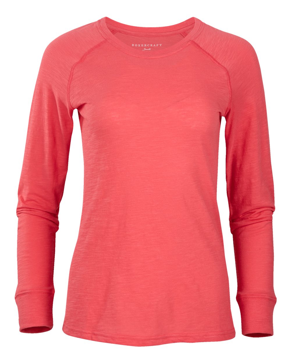 4.3 oz./yd_, 60/40 cotton/poly slub jersey 1x1 ribbed neck and cuffs Self-fabric back neck tape Heat transfer label