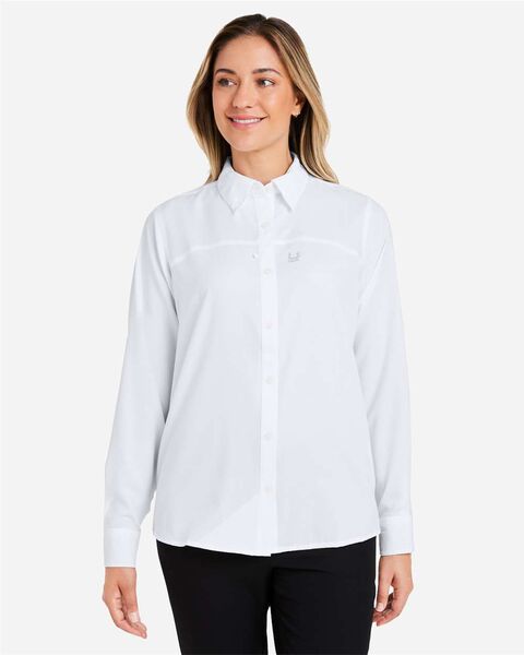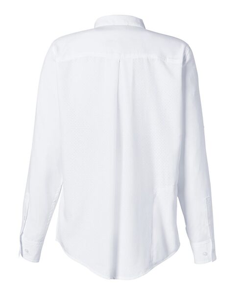 100% polyester UPF 30+ protection Mechanical stretch Button roll-up sleeves Laser perforated back for comfort