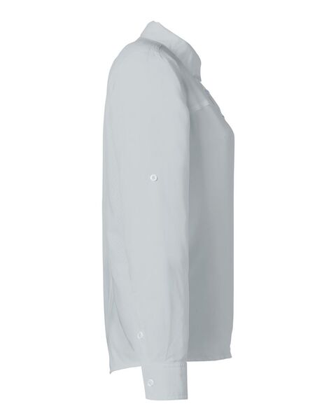 100% polyester UPF 30+ protection Mechanical stretch Button roll-up sleeves Laser perforated back for comfort