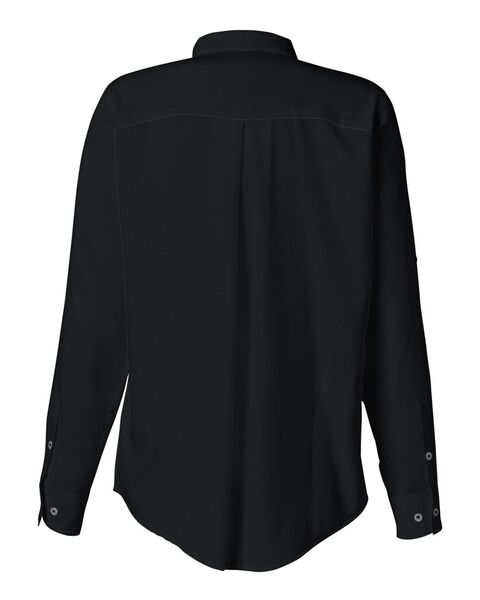 100% polyester UPF 30+ protection Mechanical stretch Button roll-up sleeves Laser perforated back for comfort