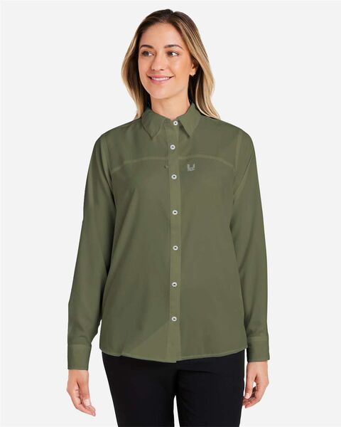 100% polyester UPF 30+ protection Mechanical stretch Button roll-up sleeves Laser perforated back for comfort