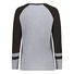 3.8 oz./yd_, 50/38/12 polyester/cotton/rayon triblend knit White/ Grey Heather is 4.7 oz./yd_ Scoop neck Raglan sleeves Tagless label