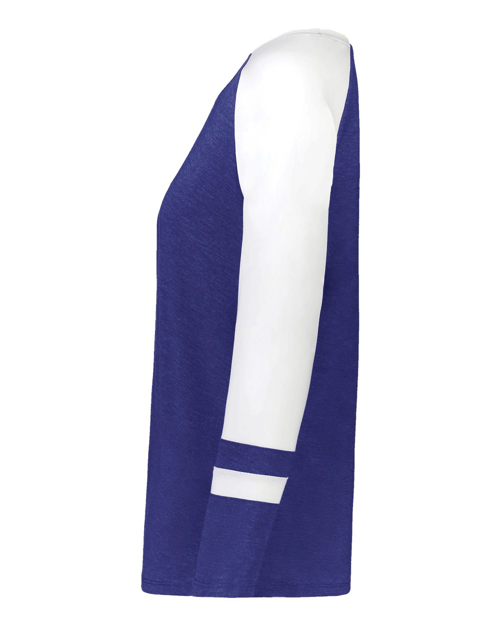 3.8 oz./yd_, 50/38/12 polyester/cotton/rayon triblend knit White/ Grey Heather is 4.7 oz./yd_ Scoop neck Raglan sleeves Tagless label
