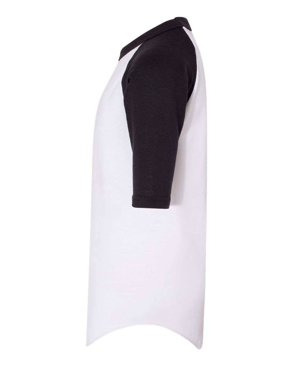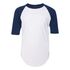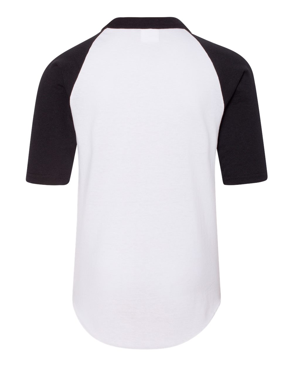 4.8 oz./yd_, 50/50 cotton/polyester jersey knit Contrast-color 1x1 rib collar and raglan sleeves Double-needle hemmed sleeves Serged fishtail bottom...