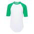 4.8 oz./yd_, 50/50 cotton/polyester jersey knit Contrast-color 1x1 rib collar and raglan sleeves Double-needle hemmed sleeves Serged fishtail bottom...