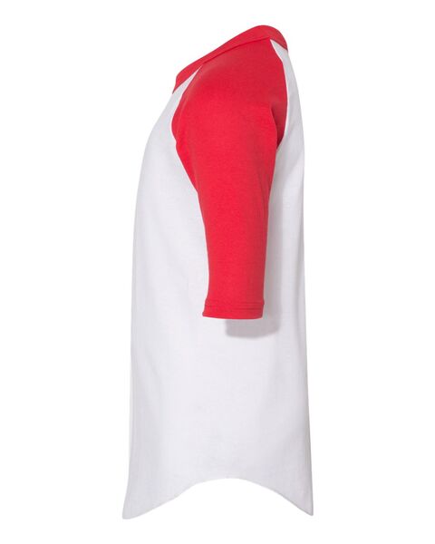 4.8 oz./yd_, 50/50 cotton/polyester jersey knit Contrast-color 1x1 rib collar and raglan sleeves Double-needle hemmed sleeves Serged fishtail bottom...