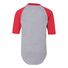 4.8 oz./yd_, 50/50 cotton/polyester jersey knit Contrast-color 1x1 rib collar and raglan sleeves Double-needle hemmed sleeves Serged fishtail bottom...