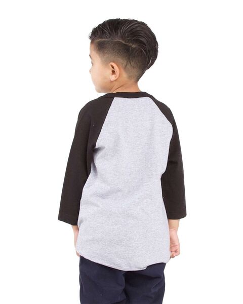 6 oz./yd_., 100% USA cotton, 18 singles Heather Grey is 90/10 USA cotton/polyester Shoulder-to-shoulder neck tape Contrast raglan sleeves and neck...