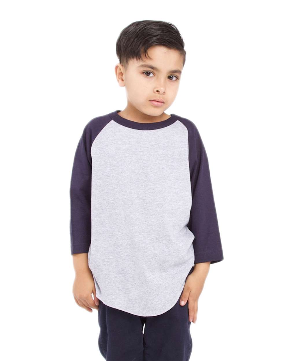 6 oz./yd_., 100% USA cotton, 18 singles Heather Grey is 90/10 USA cotton/polyester Shoulder-to-shoulder neck tape Contrast raglan sleeves and neck...
