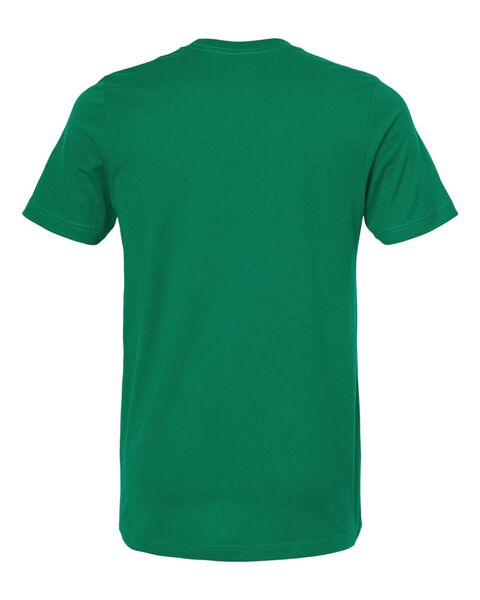 4.2 oz./yd_, 100% combed ring-spun USA premium cotton fine jersey, 36 singles Retail fit Heat-set fabric Ribbed crewneck collar Self-fabric back neck...