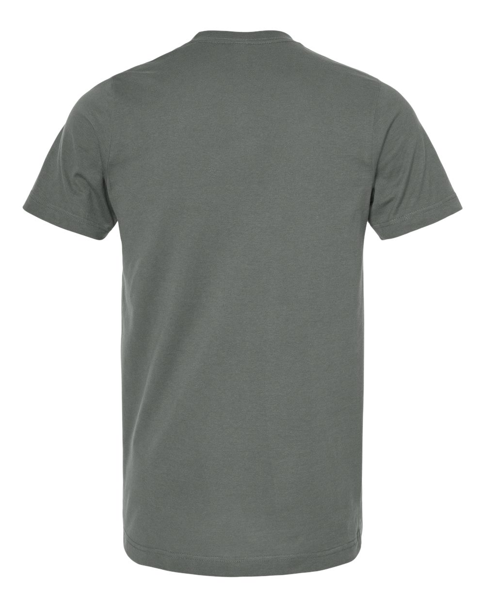 4.2 oz./yd_, 100% combed ring-spun USA premium cotton fine jersey, 36 singles Retail fit Heat-set fabric Ribbed crewneck collar Self-fabric back neck...