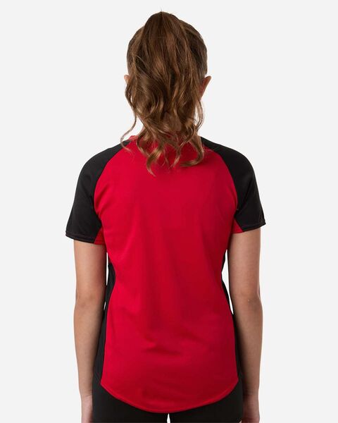 100% polyester knit with Color Secure¨ technology that prevents dye migration Moisture-wicking performance 92/8 polyester/spandex wicking...