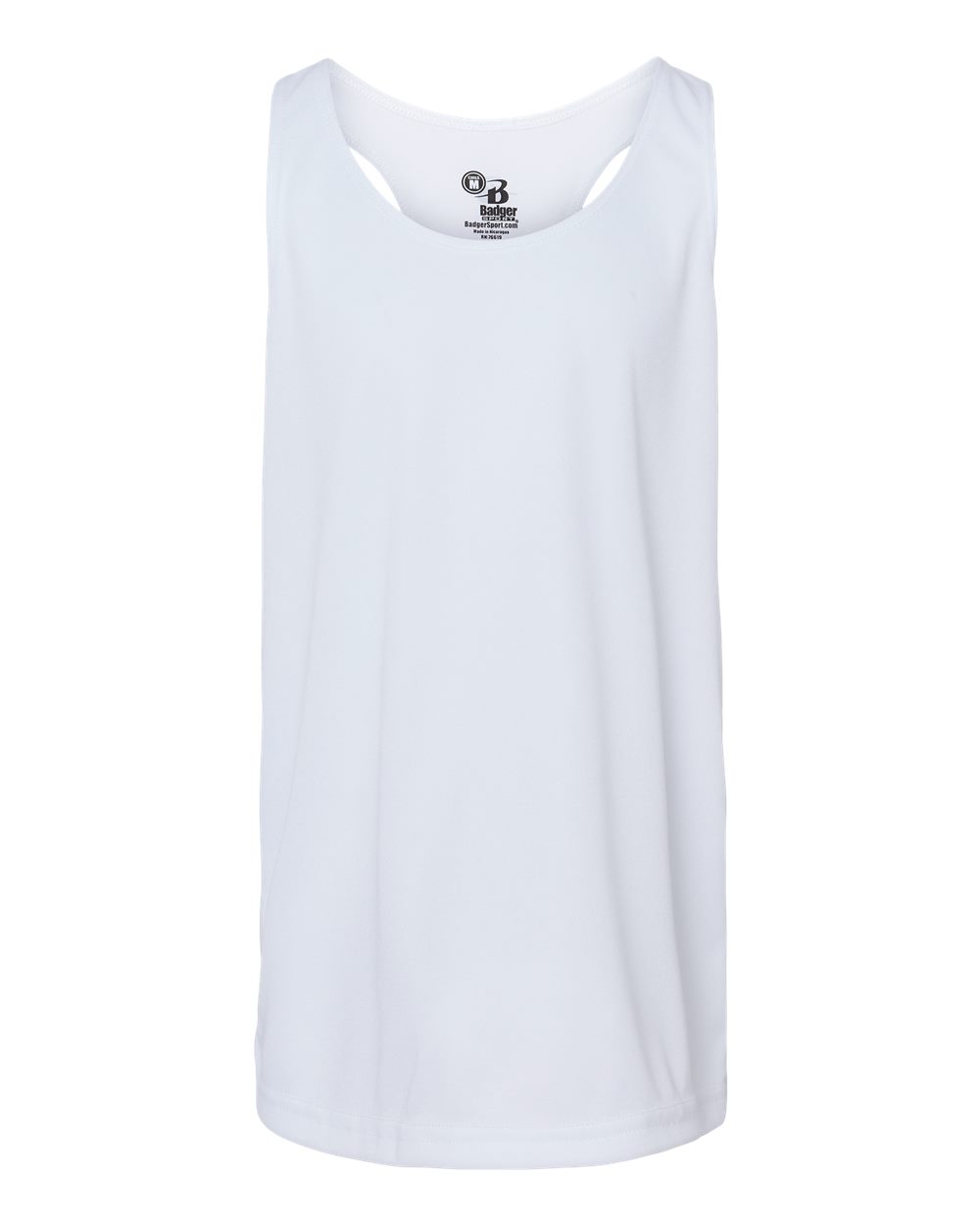 • Badger heat-seal logo on center back neck