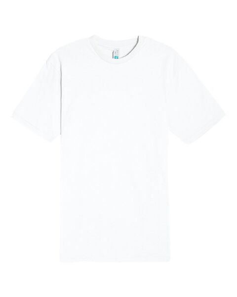 5.6 oz./yd_, 100% combed ringspun cotton; 20 singles Under 5% shrinkage Double-needle topstitch at sleeve, bottom hem, shoulders and armhole...