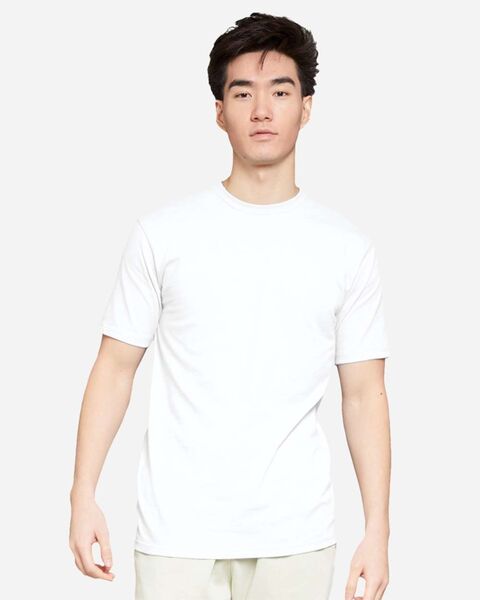 5.6 oz./yd_, 100% combed ringspun cotton; 20 singles Under 5% shrinkage Double-needle topstitch at sleeve, bottom hem, shoulders and armhole...