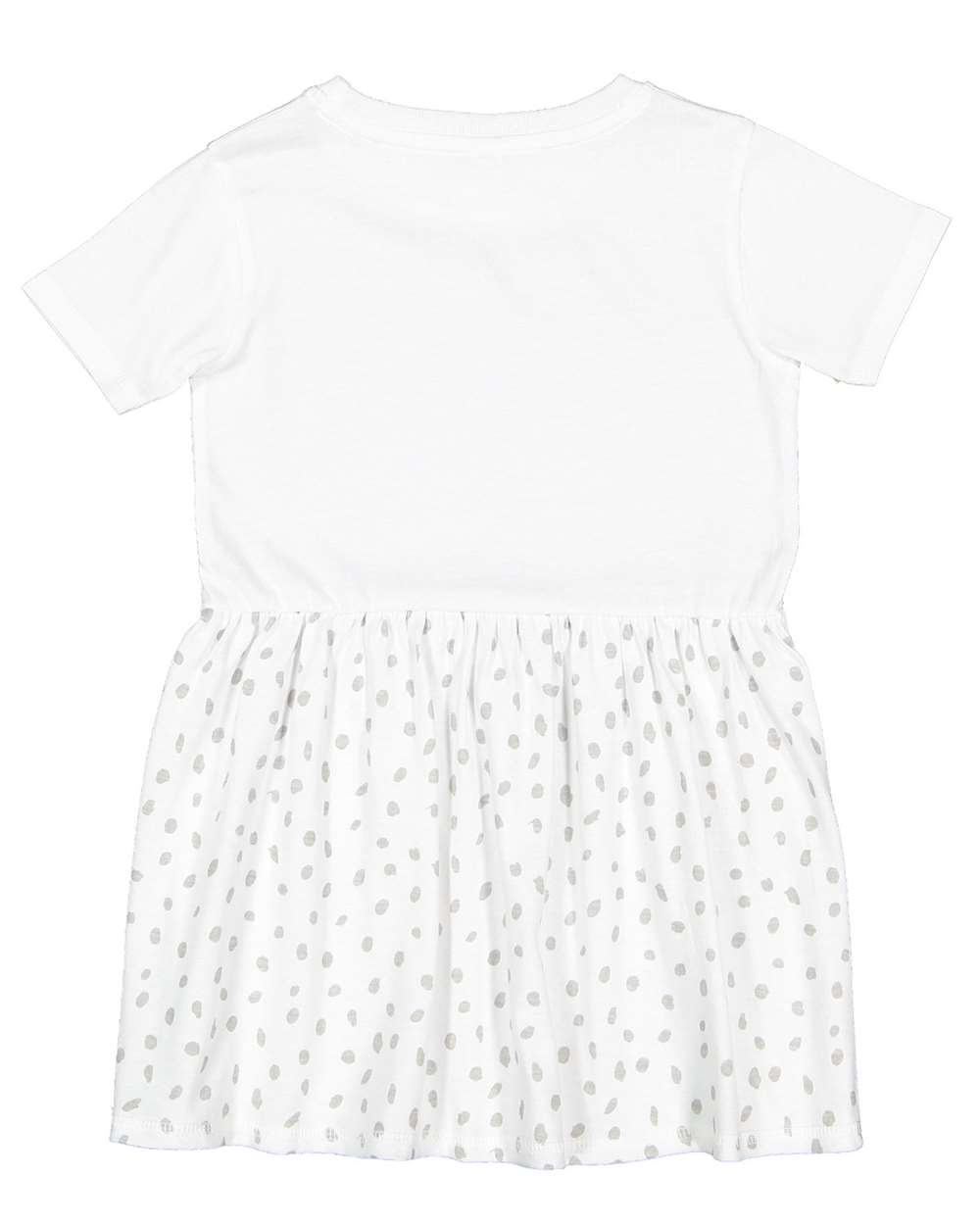• Coverstitched sleeves and gathered skirt hem
