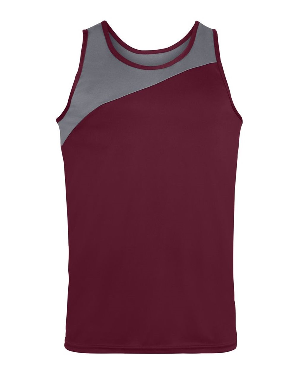 100% polyester wicking knit Wicks moisture away from the body Self-fabric binding at neck and armholes Asymmetrical contrast-color yoke Double-needle...