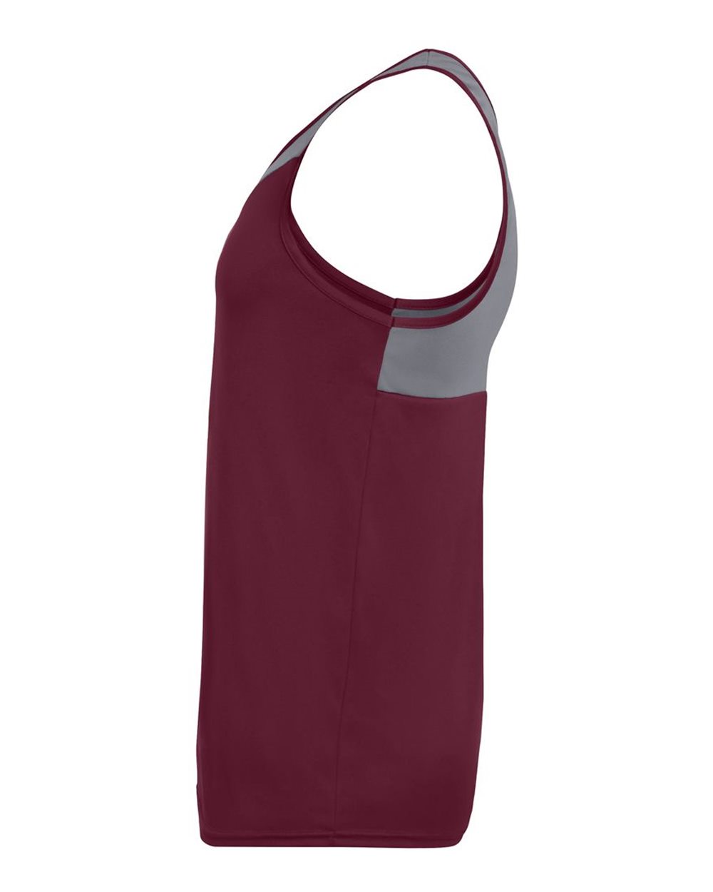 100% polyester wicking knit Wicks moisture away from the body Self-fabric binding at neck and armholes Asymmetrical contrast-color yoke Double-needle...