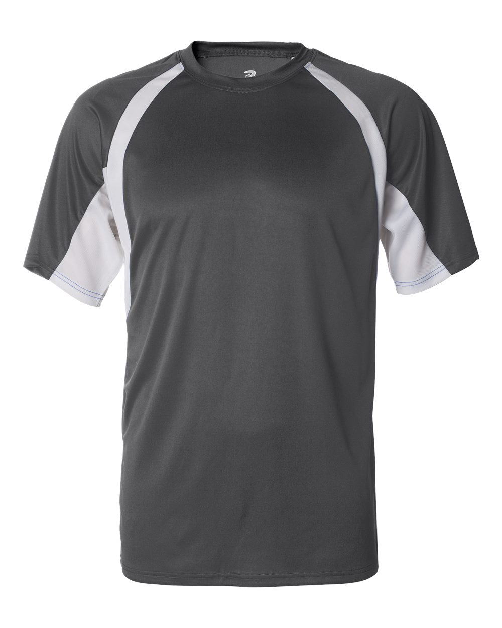 3.5 oz./yd_, 100% polyester moisture-management/antimicrobial fabric Self-fabric collar Contrast-color chest, sleeve and underarm panel Double-needle...