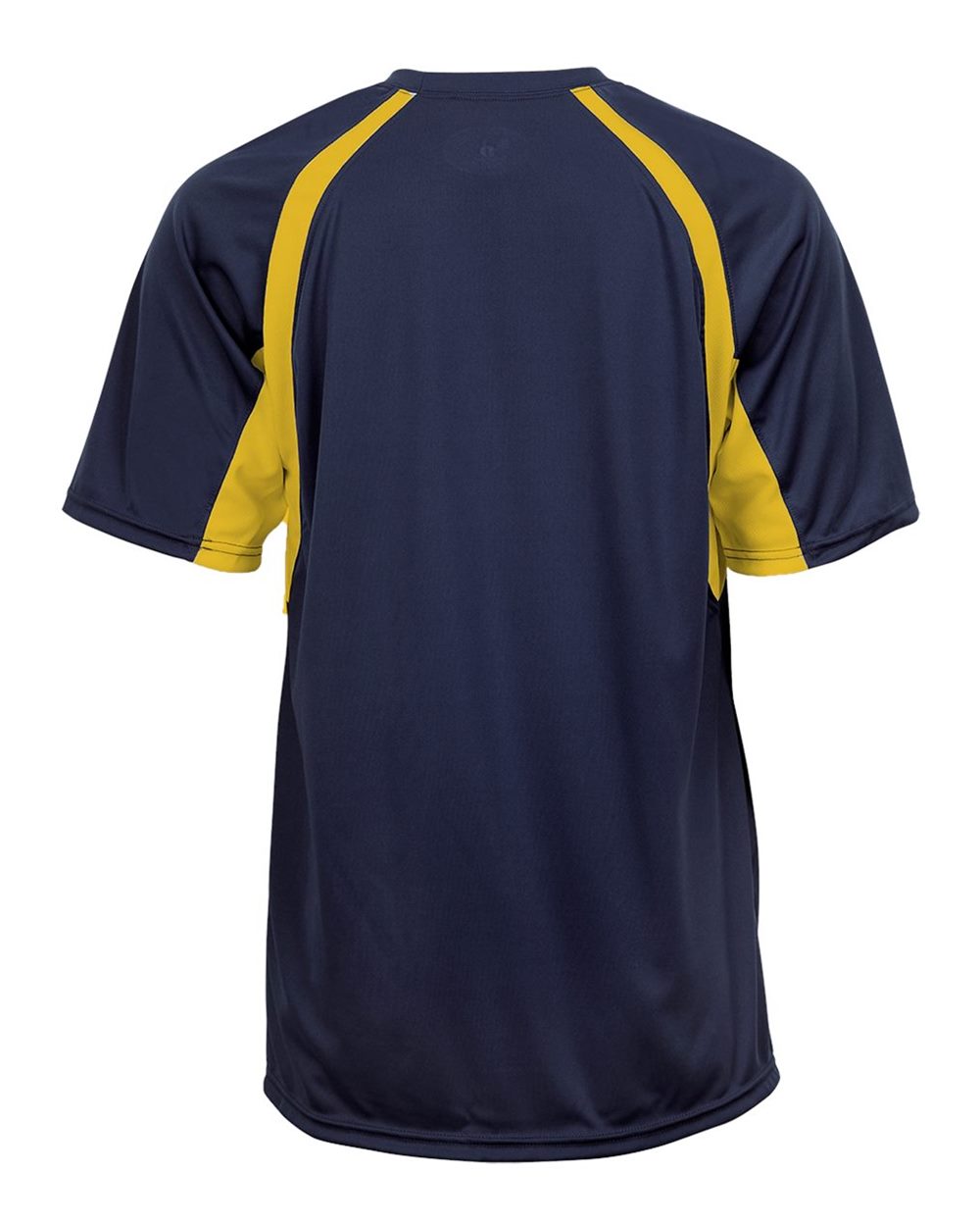 3.5 oz./yd_, 100% polyester moisture-management/antimicrobial fabric Self-fabric collar Contrast-color chest, sleeve and underarm panel Double-needle...