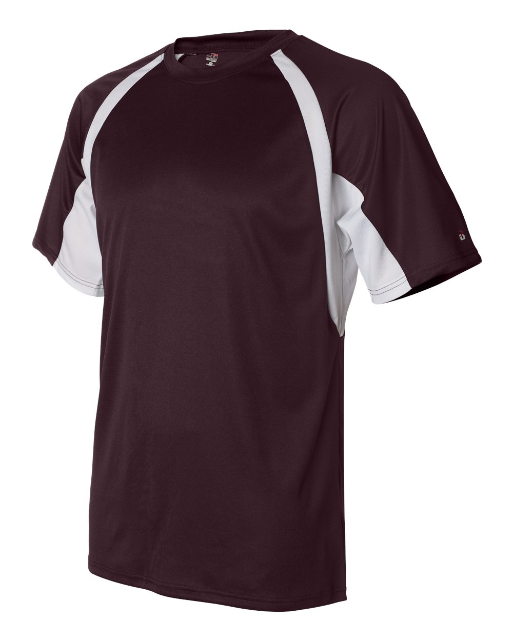 3.5 oz./yd_, 100% polyester moisture-management/antimicrobial fabric Self-fabric collar Contrast-color chest, sleeve and underarm panel Double-needle...