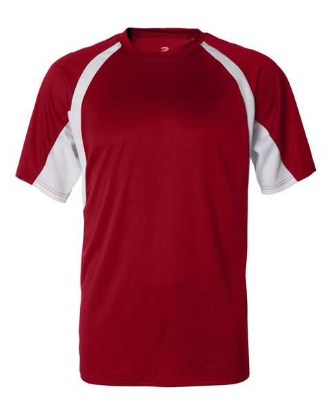 3.5 oz./yd_, 100% polyester moisture-management/antimicrobial fabric Self-fabric collar Contrast-color chest, sleeve and underarm panel Double-needle...