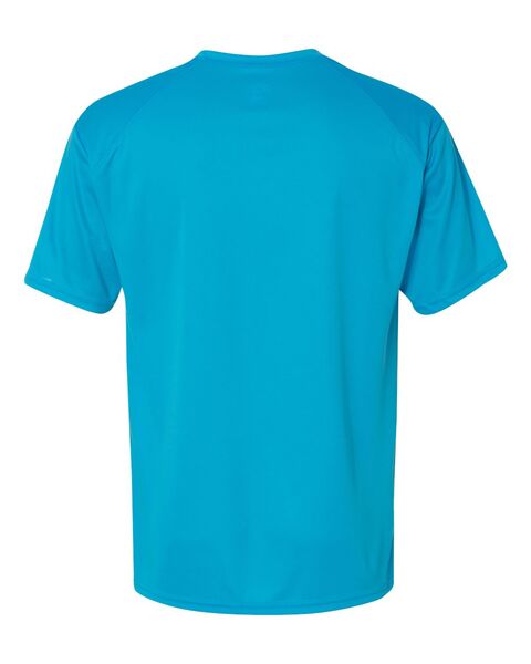 3.5 oz./yd_, 100% polyester moisture-management/antimicrobial performance fabric Self-fabric collar Badger Sport paneled shoulder for maximum movement...