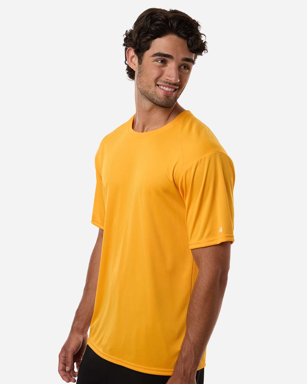 3.5 oz./yd_, 100% polyester moisture-management/antimicrobial performance fabric Self-fabric collar Badger Sport paneled shoulder for maximum movement...