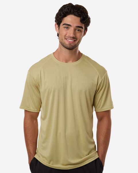 3.5 oz./yd_, 100% polyester moisture-management/antimicrobial performance fabric Self-fabric collar Badger Sport paneled shoulder for maximum movement...