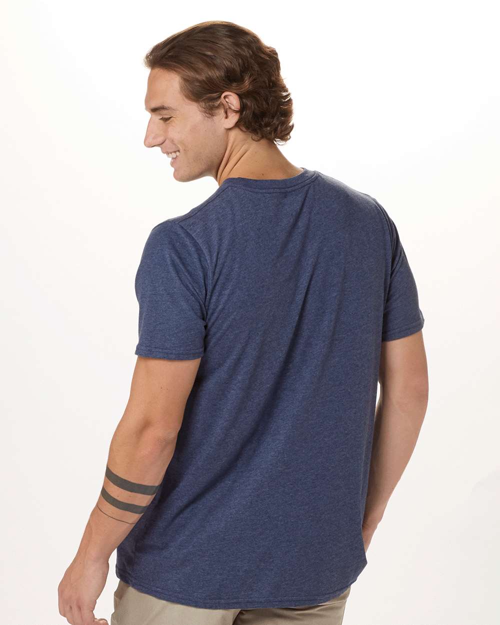 4.28 oz./yd_, 50/50 cotton/polyester Regular fit Double brushed jersey Folded neck band Self-back neck tape Heat-seal label