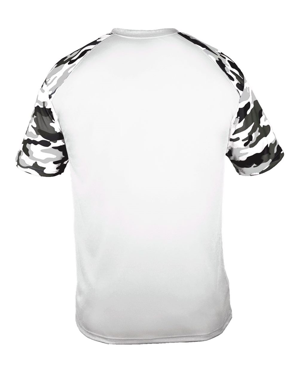 3.5 oz./yd_, 100% polyester moisture-management/antimicrobial performance fabric Sublimated camo shoulder panels & sleeves Self-fabric collar ...