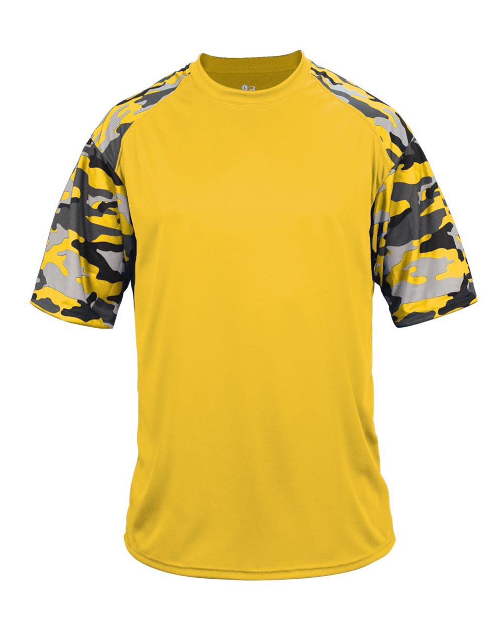 3.5 oz./yd_, 100% polyester moisture-management/antimicrobial performance fabric Sublimated camo shoulder panels & sleeves Self-fabric collar ...