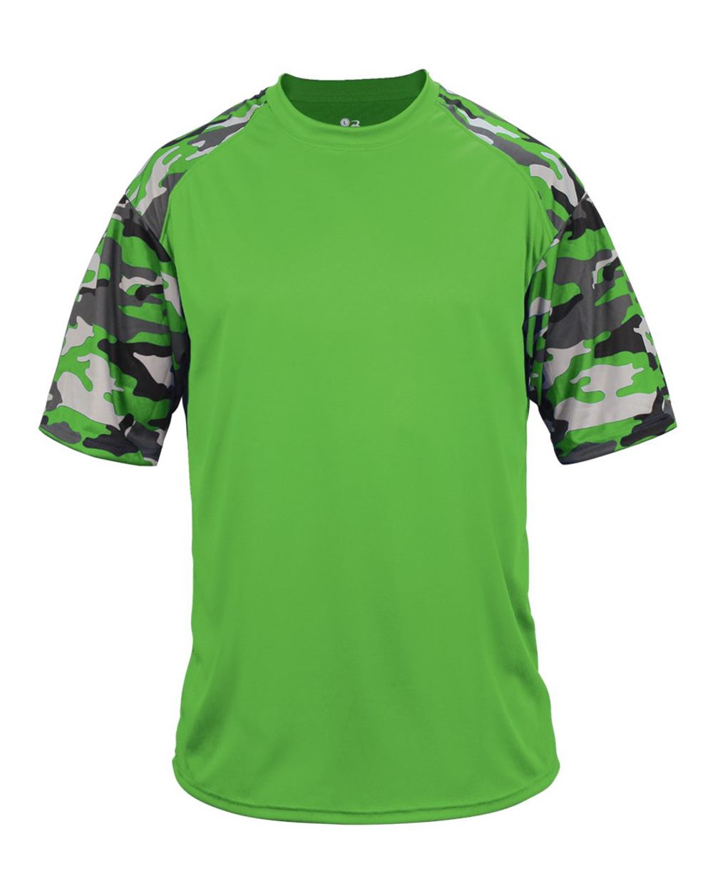3.5 oz./yd_, 100% polyester moisture-management/antimicrobial performance fabric Sublimated camo shoulder panels & sleeves Self-fabric collar ...