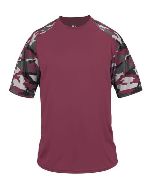 3.5 oz./yd_, 100% polyester moisture-management/antimicrobial performance fabric Sublimated camo shoulder panels & sleeves Self-fabric collar ...