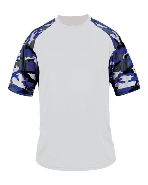 3.5 oz./yd_, 100% polyester moisture-management/antimicrobial performance fabric Sublimated camo shoulder panels & sleeves Self-fabric collar ...