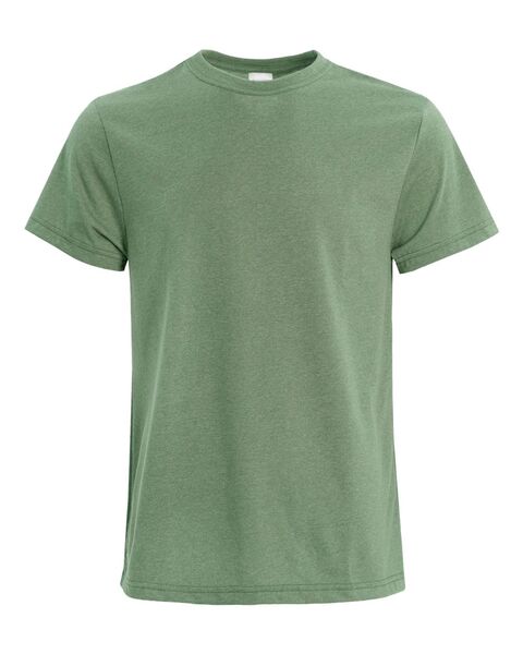 4.4 oz./yd_, 50/50 recycled cotton/recycled polyester, 26 singles Retail fit Double-needle stitching Back neck tape Shoulder-to-shoulder taping Locker...