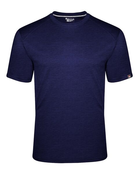 3.5 oz./yd_, 95/5 cotton/spandex moisture-management BadgerBlend fabric Classic fit Naturally comfortable Naturally antimicrobial Contrast back neck...