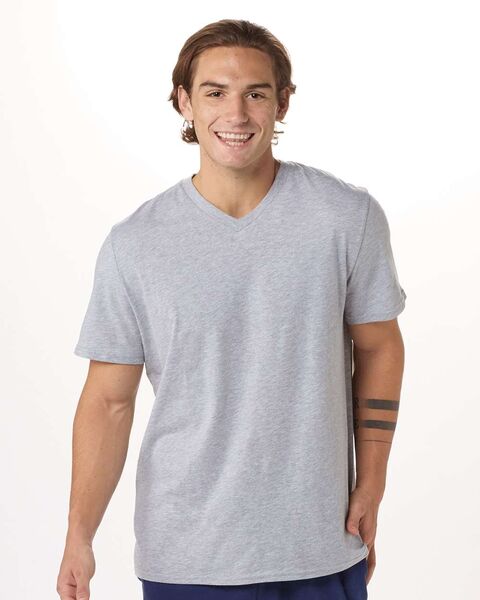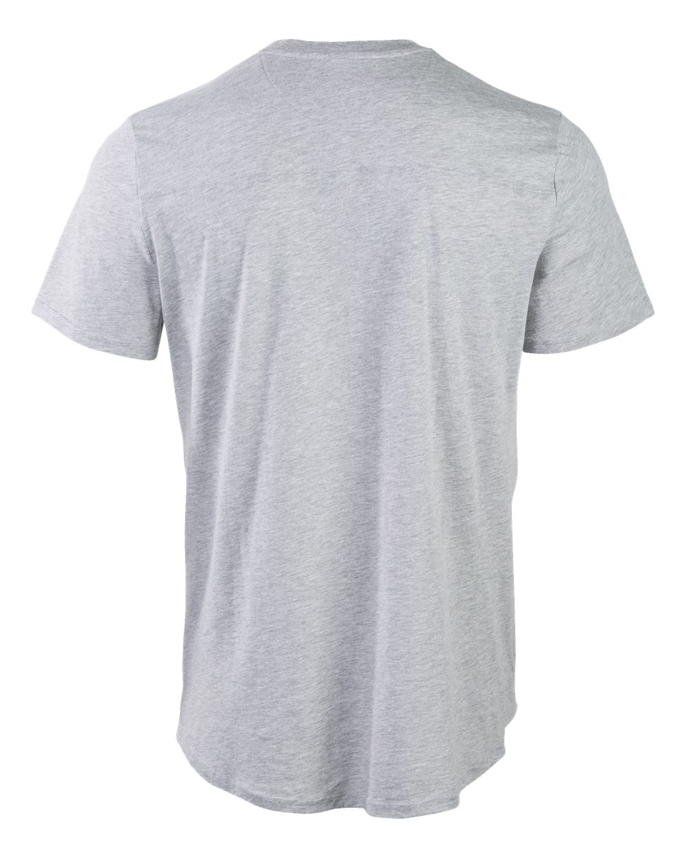 4.28 oz./yd_, 50/50 cotton/polyester Regular fit Double brushed jersey Rounded bottom drop tail Folded neck band Contrast self back neck tape Turn...