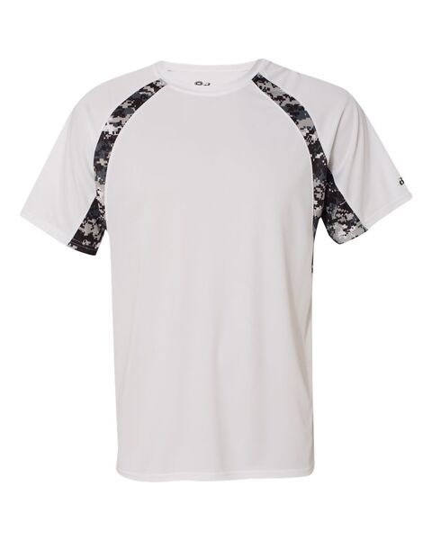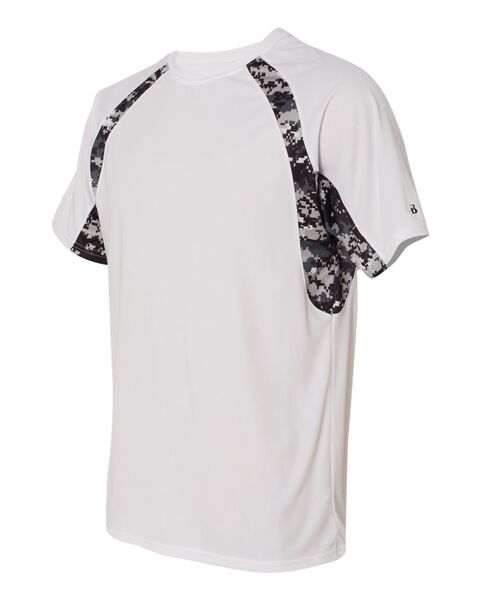 100% polyester moisture-management/antimicrobial performance fabric Self-fabric collar Sublimated digital side and sleeve panels Double-needle stitched...