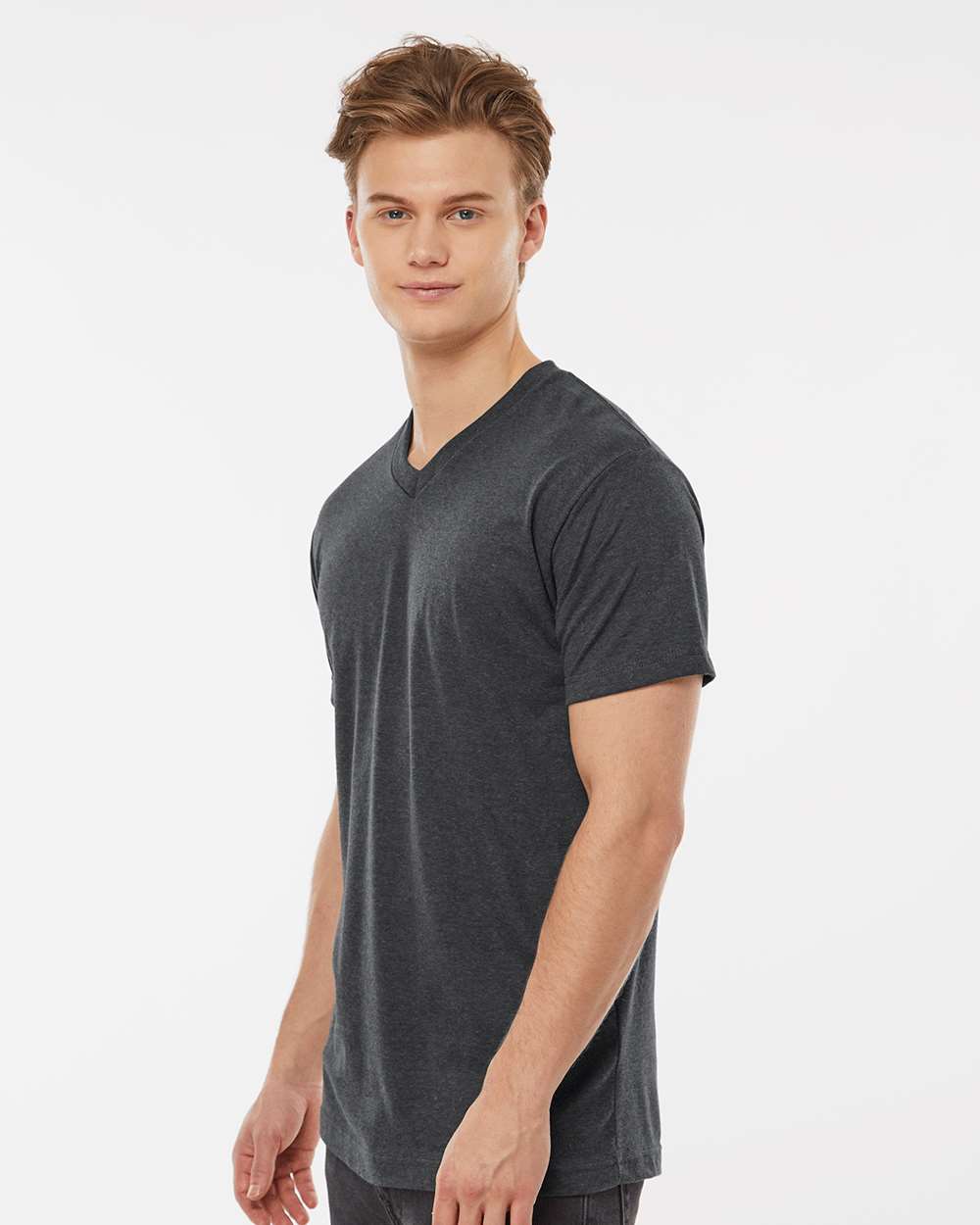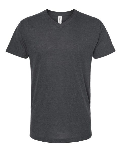 3.6 oz./yd_, 65/35 polyester/combed ring-spun USA premium cotton, 30 singles Heat-set to minimize shrinkage Ribbed v-neck collar Back neck tape...