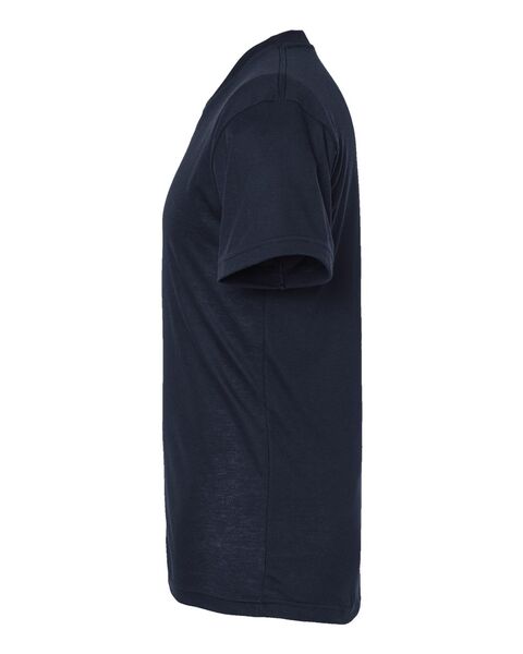 3.6 oz./yd_, 65/35 polyester/combed ring-spun USA premium cotton, 30 singles Heat-set to minimize shrinkage Ribbed v-neck collar Back neck tape...