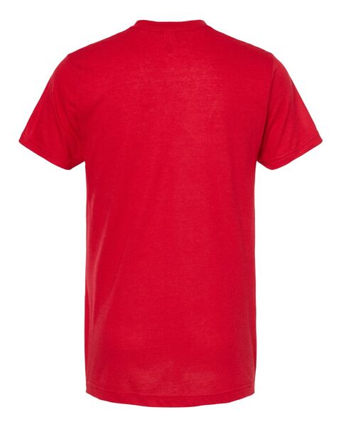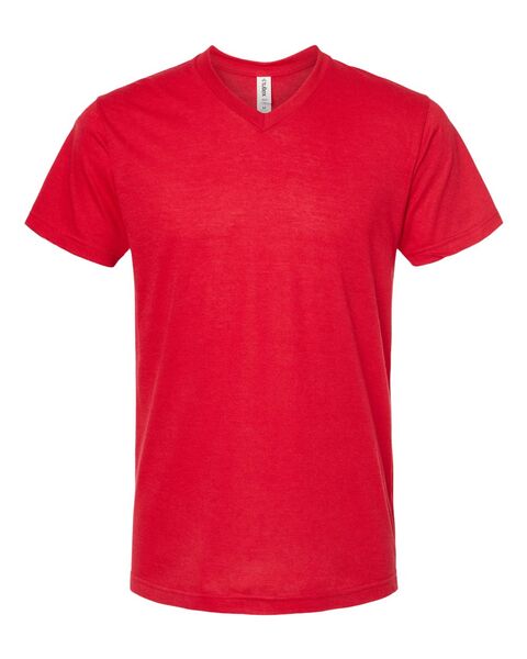 3.6 oz./yd_, 65/35 polyester/combed ring-spun USA premium cotton, 30 singles Heat-set to minimize shrinkage Ribbed v-neck collar Back neck tape...