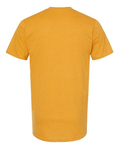 4.3 oz./yd_, 50/50 combed ring-spun USA premium cotton/polyester fine jersey, 30 singles Reactive-dyed Pre-washed to minimize shrinkage Ribbed crewneck...