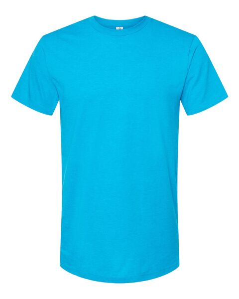 4.3 oz./yd_, 50/50 combed ring-spun USA premium cotton/polyester fine jersey, 30 singles Reactive-dyed Pre-washed to minimize shrinkage Ribbed crewneck...