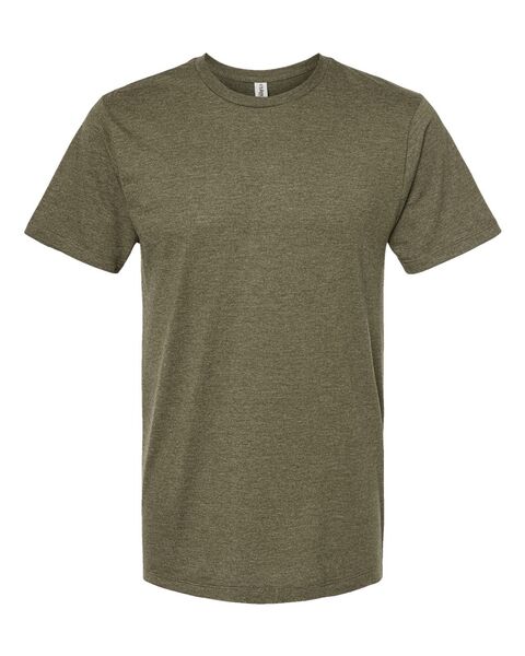 4.3 oz./yd_, 50/50 combed ring-spun USA premium cotton/polyester fine jersey, 30 singles Reactive-dyed Pre-washed to minimize shrinkage Ribbed crewneck...