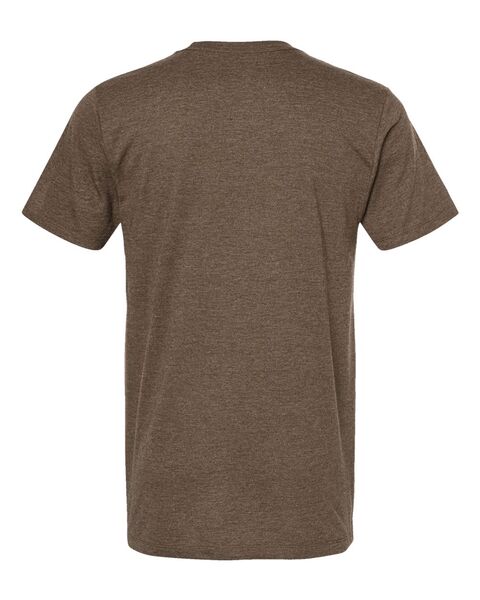 4.3 oz./yd_, 50/50 combed ring-spun USA premium cotton/polyester fine jersey, 30 singles Reactive-dyed Pre-washed to minimize shrinkage Ribbed crewneck...