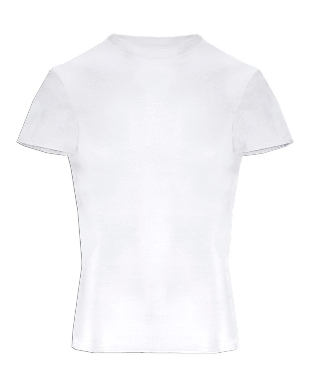 83/17 polyester/spandex moisture-management fabric Stretch body fit Self-fabric collar Double-needle hem Badger heat seal logo on left sleeve Heat...